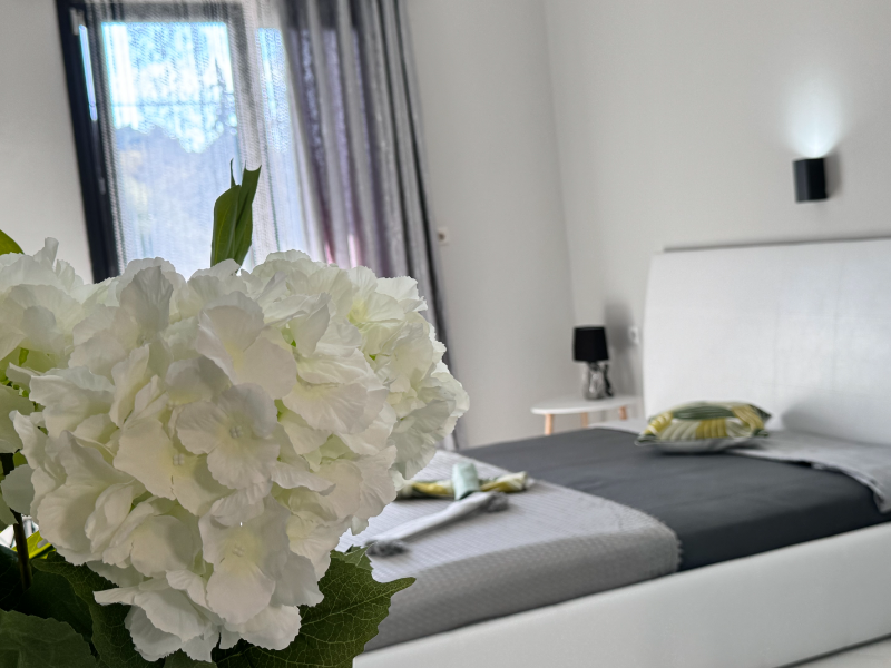 Το Δίκλινο Δωμάτιο Νο. 2, που βρίσκεται στον 1ο όροφο, αποτελεί έναν άνετο και λειτουργικό χώρο 28 τ.μ., ιδανικό για δύο άτομα. Διαθέτει ιδιωτική κουζίνα πλήρως εξοπλισμένη, ιδιωτικό μπάνιο μοντέρνας αισθητικής και μπαλκόνι με θέα στη φύση, όπου μπορείτε να απολαύσετε την ηρεμία της Σκιάθου. Το δωμάτιο είναι εξοπλισμένο με ένα άνετο διπλό κρεβάτι, Wi-Fi υψηλής ταχύτητας για συνεχή σύνδεση και κλιματισμό που εξασφαλίζει ιδανικές συνθήκες διαμονής. Η ισορροπία ανάμεσα στην άνεση και την πρακτικότητα κάνει αυτό το δωμάτιο την ιδανική επιλογή για χαλαρωτικές και αξέχαστες διακοπές.